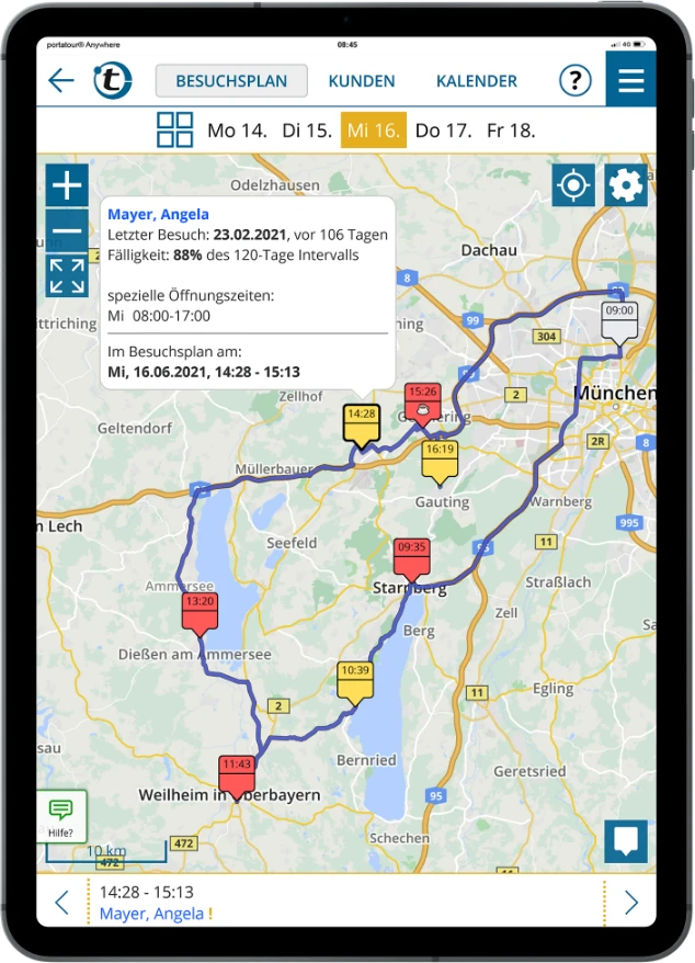 In Portatour werden Besuche insbesondere durch feste Besuchsintervalle priorisiert. Es wird angefahren, wer mal wieder dran wäre. A-Kunden werden öfter besucht als B-Kunden und so weiter.