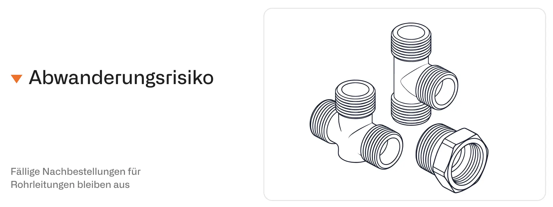 Acto erkennt sofort, wenn ein Installateur zwar noch Rohre bei Euch kauft, aber seine Heizungsbestellungen plötzlich zum Wettbewerb verlagert.